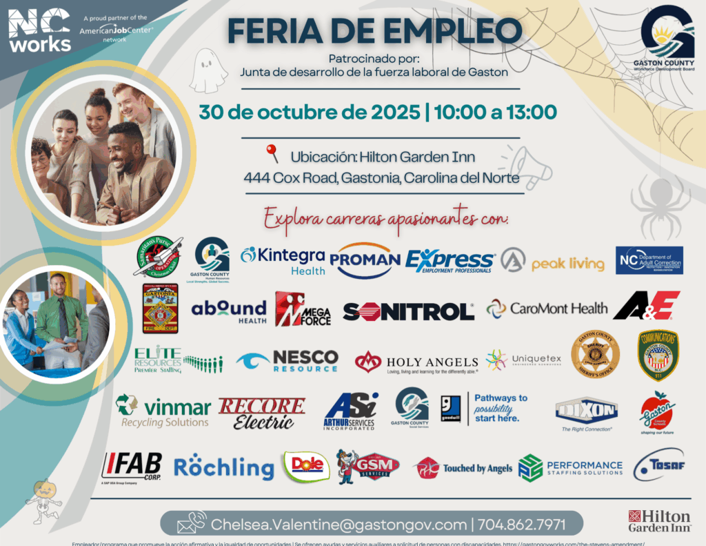 The NCWorks Career Center – Gaston County is temporarily located at 330 Dr. Martin Luther King Jr. Way, Gastonia, NC (inside DSS – across the street from the Courthouse). The Career Center is expected to move to its new location at Loray Mill in mid-October. Check back soon for updates!